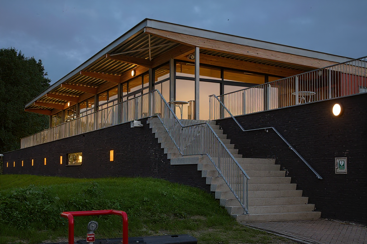 Het nieuwe clubgebouw vormt het kloppend hart van de vereniging: een plek waar sport, ontmoeting en organisatie samenkomen. Het ontwerp is opgezet als een helder en functioneel gebouw in twee lagen, waarin een duidelijke scheiding is gemaakt tussen sportgerichte functies en verblijfsruimten.